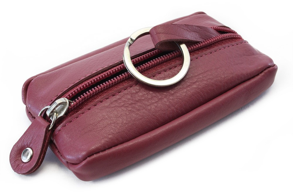 Bordovo červená kožená kľúčenka so zipsovým vreckom Lana