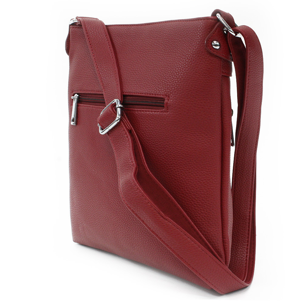 Stredná dámska kabelka cez telo od výrobcu MAHEL zaujme striebornými kovovými doplnkami na prednej strane.