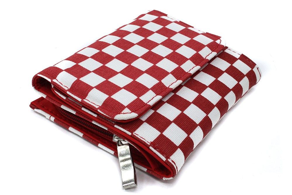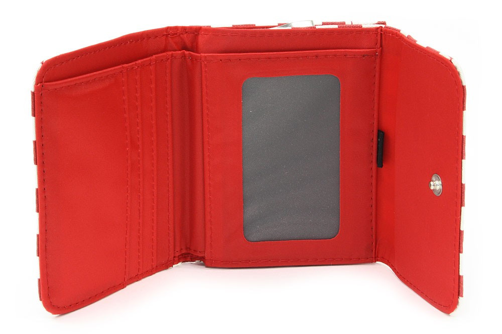 Jednoduchá klasická peněženka, která má velkou kapsu na bankovky, 4 přihrádky na kreditní karty a doklady, dvě průhledné okna a zipovou kapsu na mince.