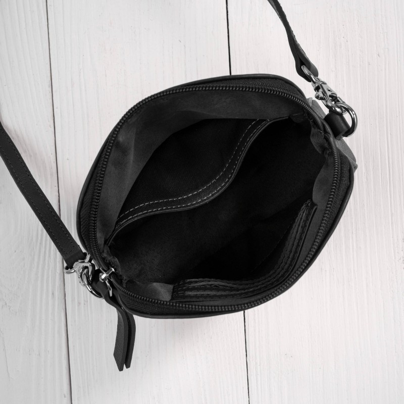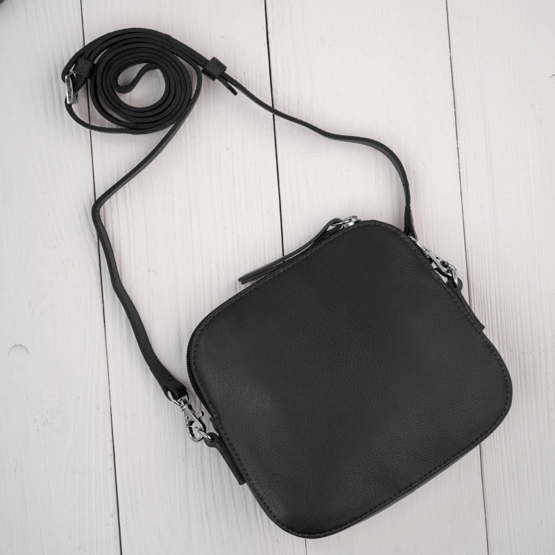 Malý dámsky crossbag z pravej kože v elegantnom čiernom odtieni predstavuje ideálne spojenie nadčasového designu, kompaktnej veľkosti a vysokej funkčnosti.