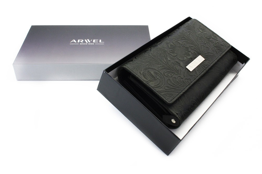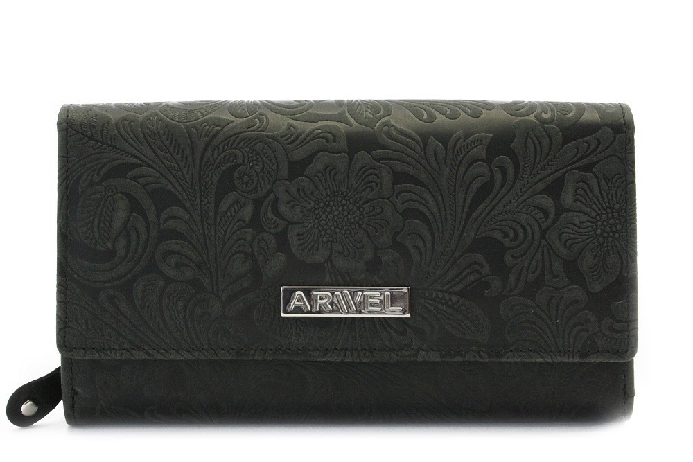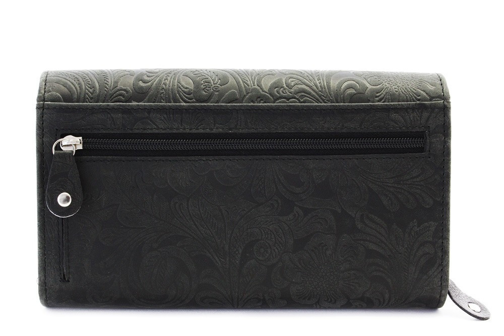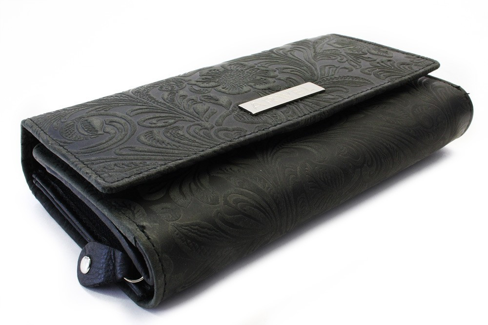 Čierna poklopová kožená dámska peňaženka so vzorom Ourania