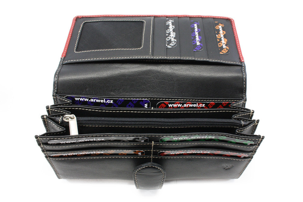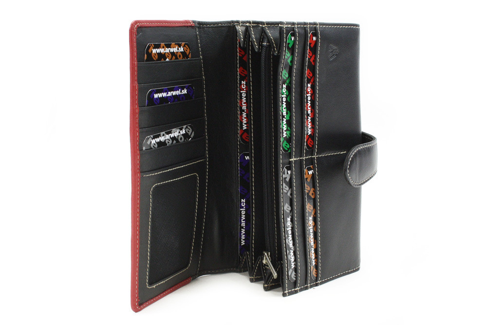 Dámska kožená peňaženka českej značky Arwel má všetko, čo potrebujete na prehľadné a pohodlné každodenné používanie.