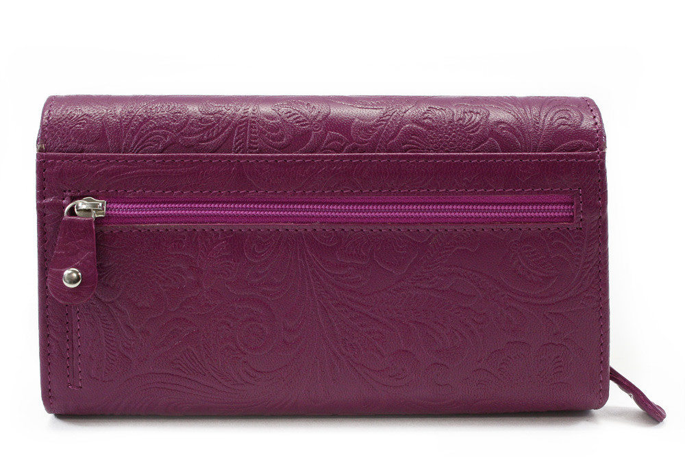 Fuchsiová klopnová kožená dámska peňaženka so vzorom Ourania