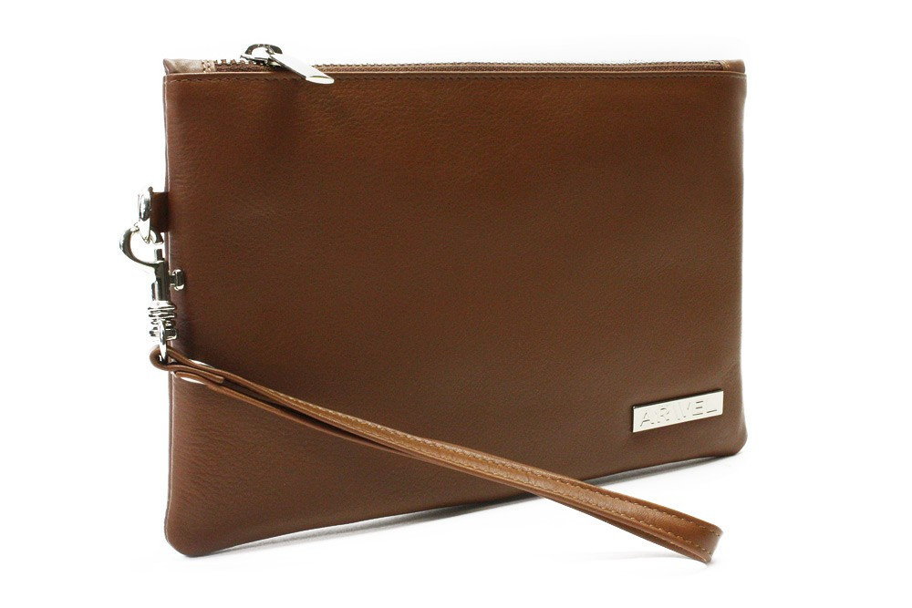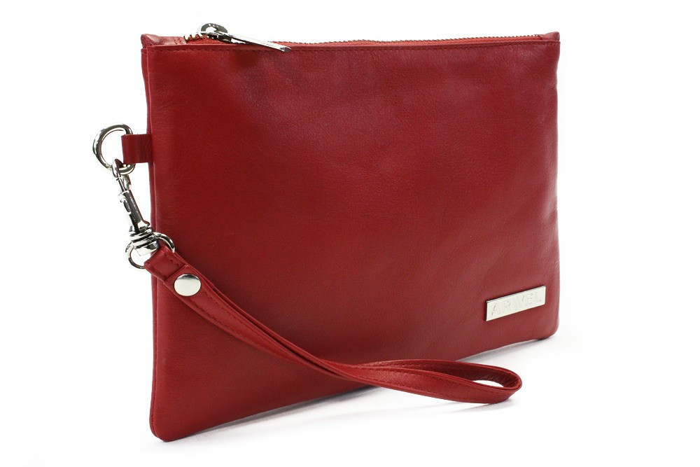 Jednoduchá dámska kožená etue obsahuje jednu veľkú priehradku na zips. Súčasťou je odnímateľné pútko.