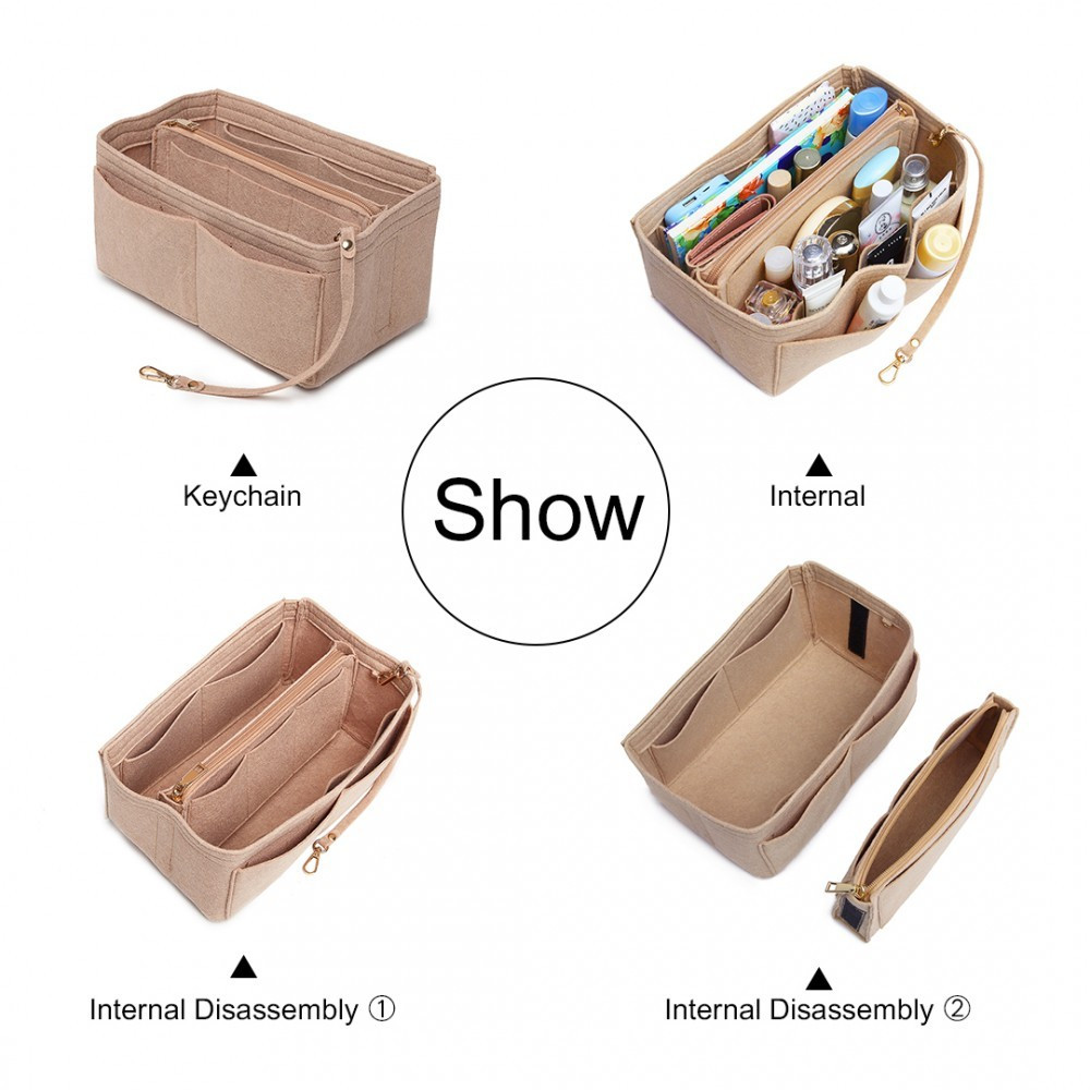 Organizér, ktorý môžete vložiť do kabelky a mať všetko prehľadne usporiadané. A keď si budete chcieť vziať inú kabelku, tak stačí len vybrať tento organizér a presunúť ho do novej kabelky. Hlavné vrecko je otvorené a priestranné a má množstvo vreciek. Možnosť využiť aj ako kozmetickú alebo cestovnú taštičku.