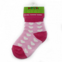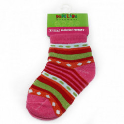 Kojenecké barevné ponožky mají pohodlný volný lem a plochý šev na špici.
