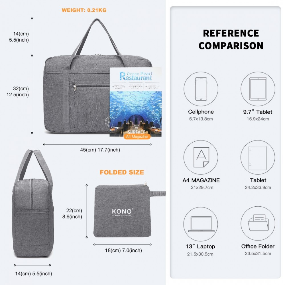 Všestranná príručná taška na cestovanie má hlavný priestor krytý zipsom a na každej strane otvorenej priehradky. Prázdnu tašku je možné zložiť do menšieho rozmeru. Taška je vyrobená z vysoko kvalitnej, vodeodolnej tkaniny, ktorá chráni vaše veci pred dažďom.