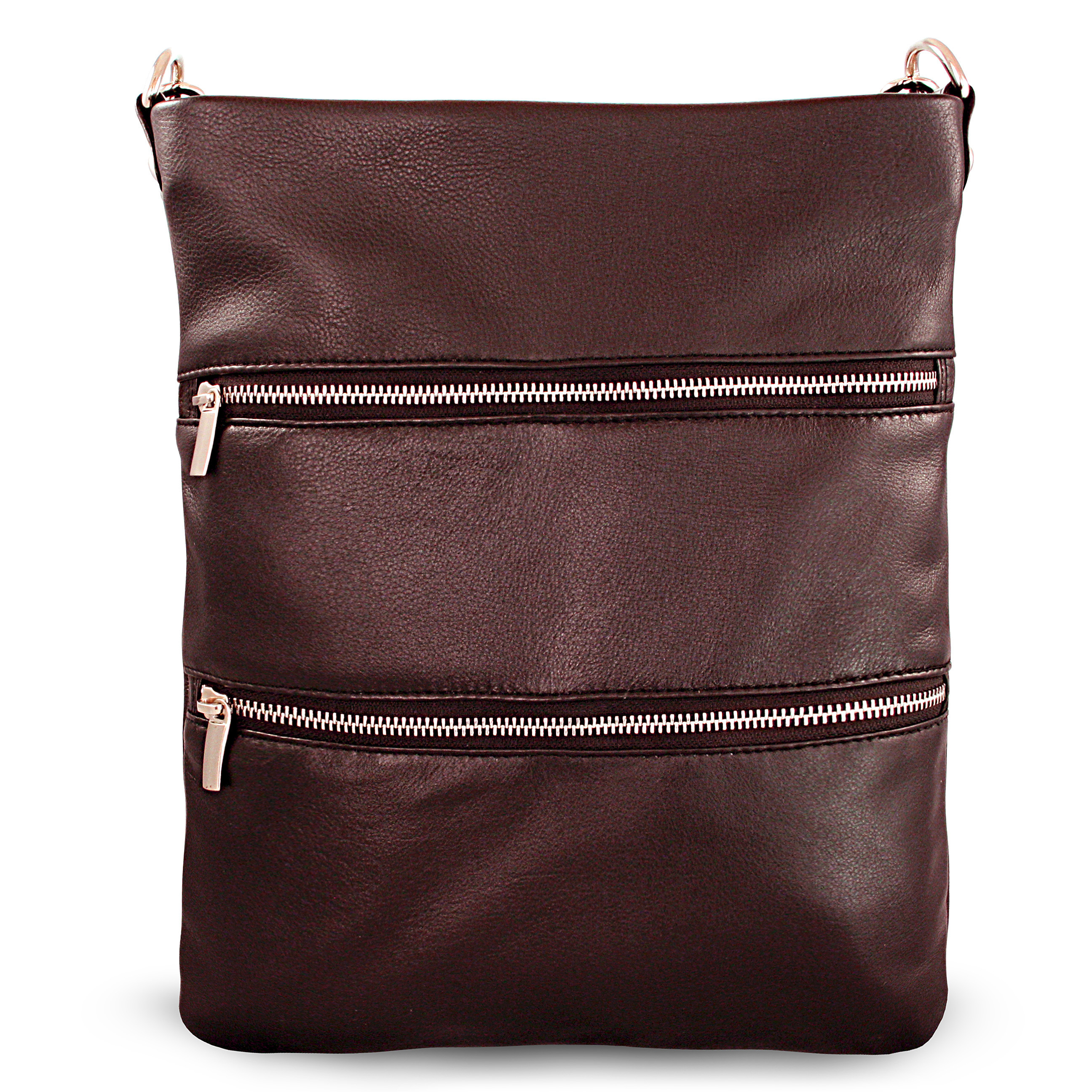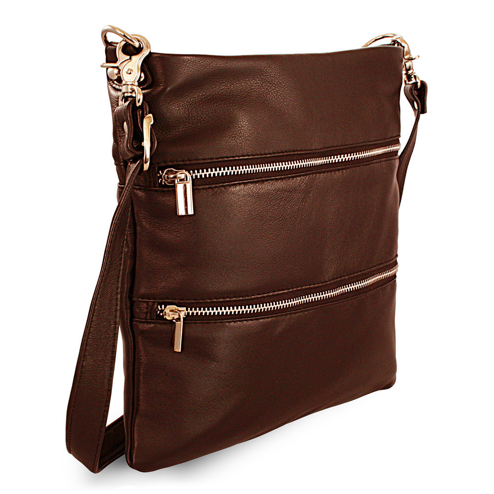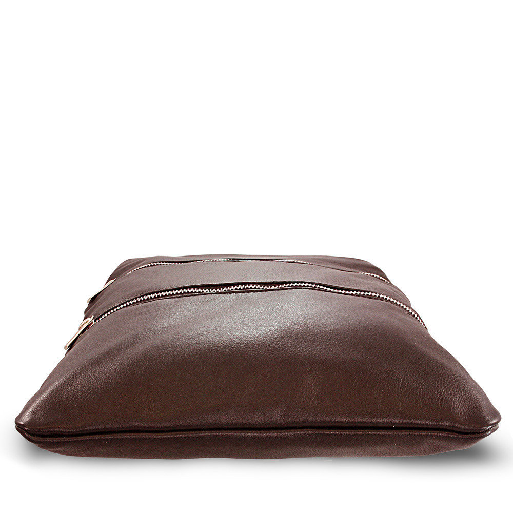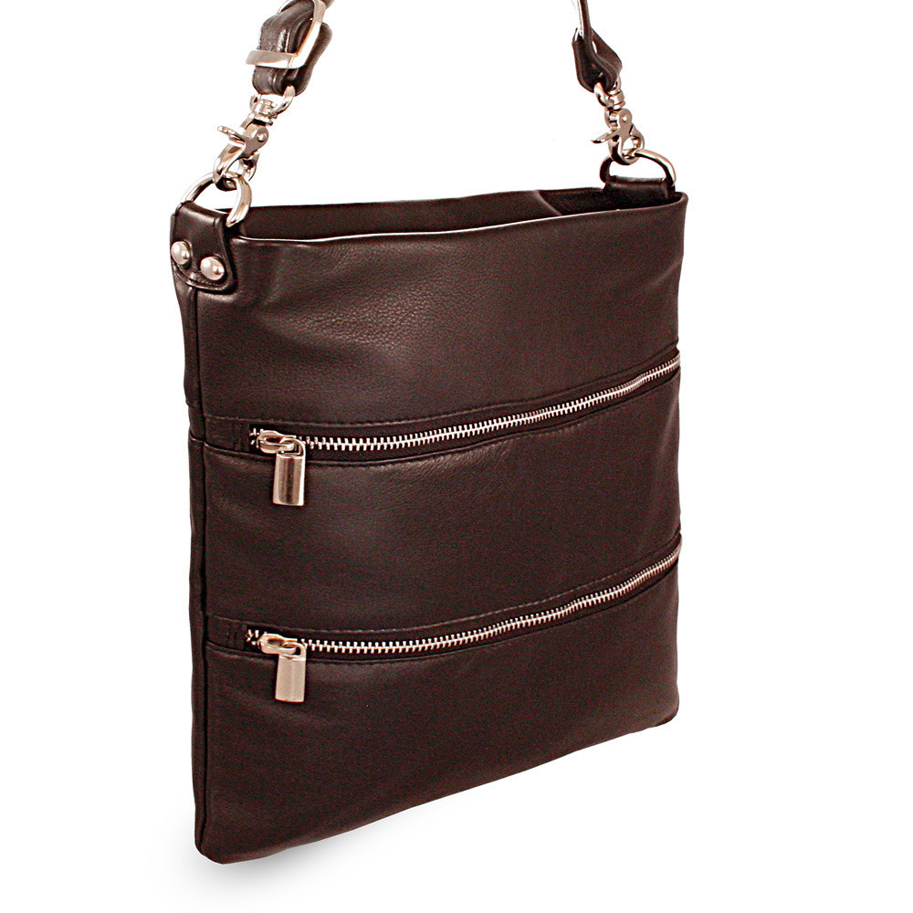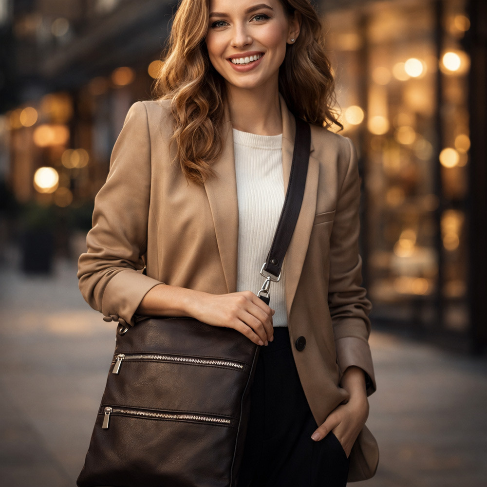 Moderná a nápaditá veľká dámska kabelka z jemnej pravej kože českej značky Arwel má hlavný priestor krytý zipsom. Vnútri sa nachádza jedno malé otvorené a jedno zipsové vrecko. Súčasťou kabelky je malé zrkadlo v koženom obale. Na prednej aj zadnej vonkajšej strane sa nachádzajú zipsové vrecká. Popruh cez rameno je odnímateľný a nastaviteľný.