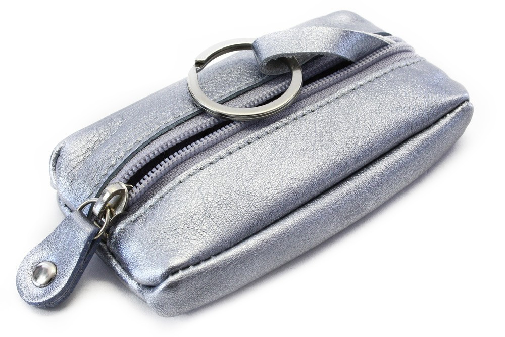 Tmavo strieborná kožená kľúčenka so zipsovým vreckom Lana
