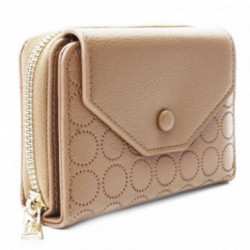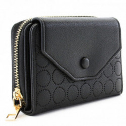 Podlhovastá, bohato vybavená, klopnová peňaženka ponúka tri priehradky na bankovky, jeden veľký delený zipsový mincovník, 12 priehradiek na kreditné karty alebo vizitky, tri priehľadné okná na vkladanie fotiek a dve zipsové vrecká.