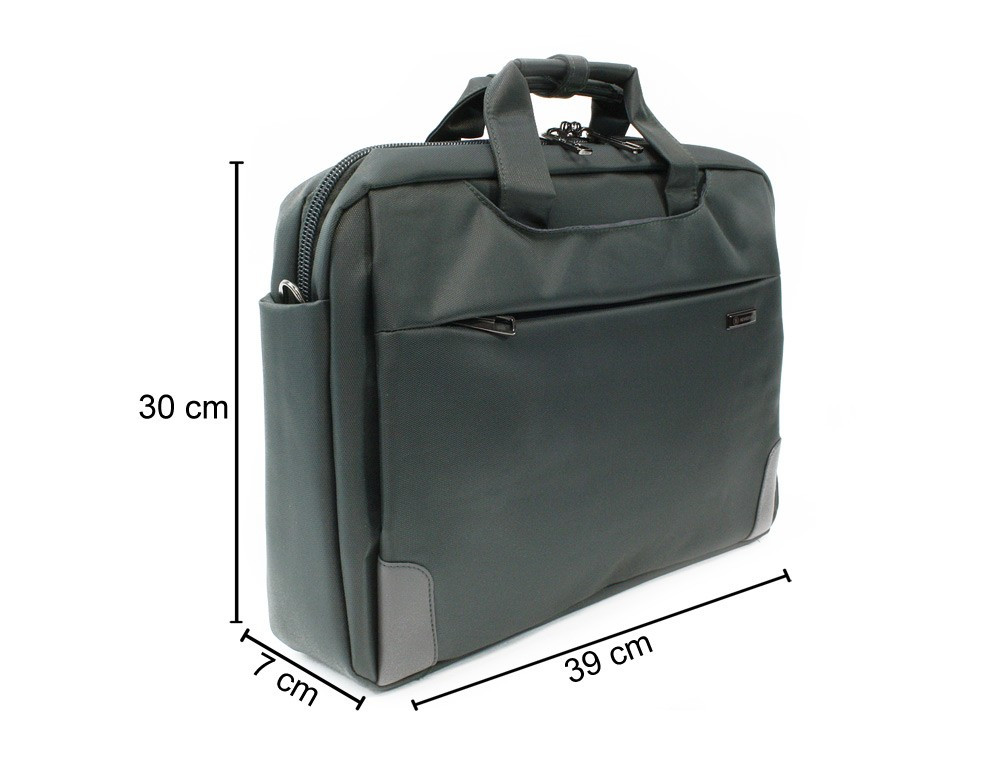 Praktická pánska príručná taška na notebook na nosenie cez rameno alebo v ruke. Možnosť využitia tašky ako cestovné alebo na každodenné nosenie. Vnútri tašky je vypolstrované vrecko na notebook a menšie vrecká na ceruzky a rôzne drobnosti. Na zadnej strane je zipsové vrecko. Predná strana obsahuje jedno zipsové a jedno otvorené vrecko chránené suchým zipsom. Popruh je odnímateľný a nastaviteľný.