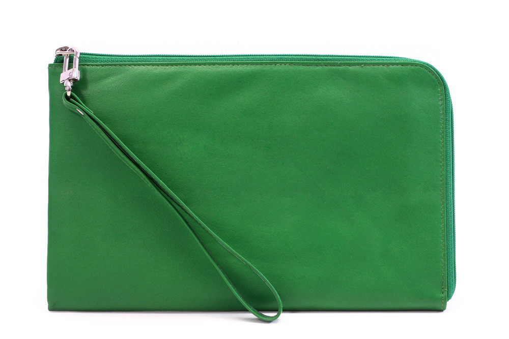 Jednoduchá dámska kožená etue obsahuje jednu veľkú priehradku na zips. Súčasťou je odnímateľné pútko.